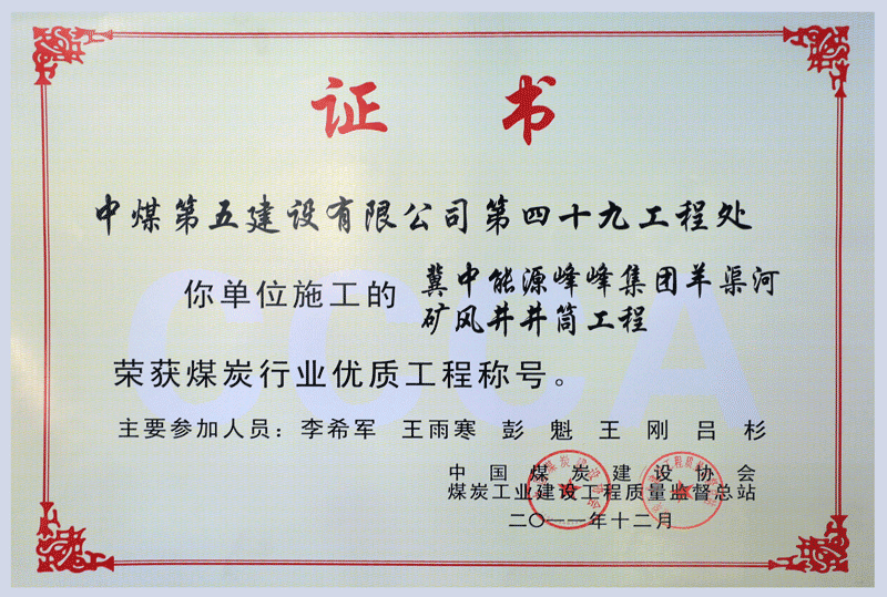 峰峰集团羊渠河 优质工程